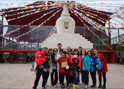 河南华信局部员工在石林前留影记念河南华信局部员工与家眷在丽江千古情风光区留影记念